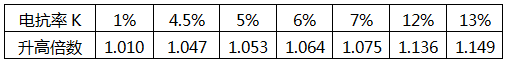 電容器補(bǔ)償回路串聯(lián)電抗器后,電容器端電壓升高,其升高倍數(shù)如下: