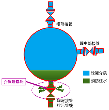 其次,球罐的介質密度不能比水大,換句話說,注入球罐內的水必須要流入到球罐最底部,只有這樣才能將介質從泄漏處頂開,用水來代替介質從泄漏點泄漏出去,從而將介質牢牢限制在容器內。