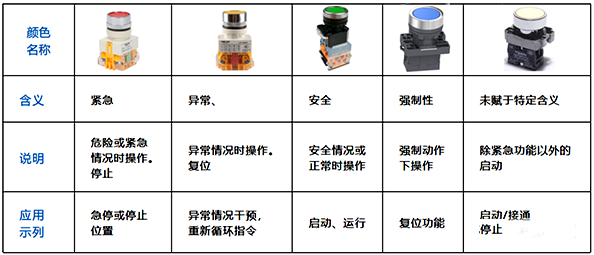 由于按鈕開關(guān)和指示燈的顏色基本都一樣,這里列出一張表供大家參考討論,如下表1所示: