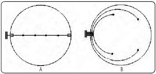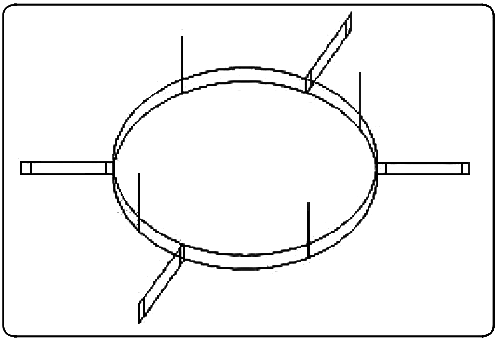 2、B是熱電偶成環形分布,從反應器側面法蘭口插入,按提前設計好的路徑進行安裝。該方案根據不同的工藝要求需要二次設計安裝支架,可以在反應器內構件上焊接支架,對于測溫點沒有內構件的可以在反應器器壁上焊接支架,或獨立設計支架,如圖2所示。其優點是可應用于測溫點多且非直線分布的場合;缺點是設計量大,安裝復雜,支架全部使用螺栓聯接,對支架長周期使用的穩定性提出較高的要求。