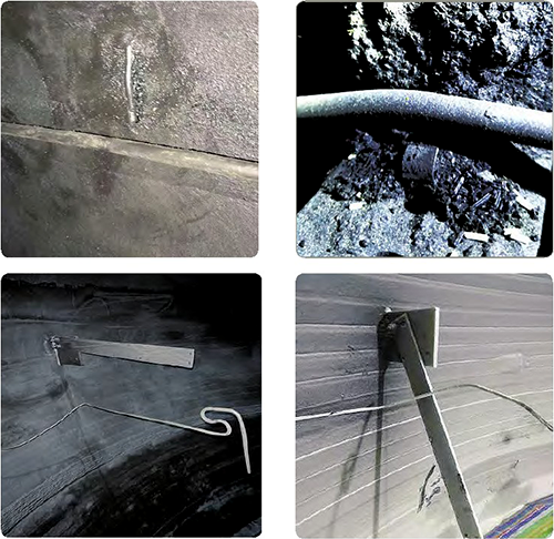 ②延長支架采用“一”字347鋼板,僅用兩顆螺栓聯接。筆者在第2個換劑周期發現大量螺栓松動或斷裂,延長支架嚴重下垂,綁在其上的熱電偶也都脫落。從斷裂的螺栓分析,應屬于高溫硫化氫腐蝕,加上高純度氫氣的存在,又進一步加速了螺栓的腐蝕。其次,固定螺栓縱向安裝,催化劑下沉的壓力作用在支架上,與螺栓形成“剪刀”力,導致螺栓斷裂。