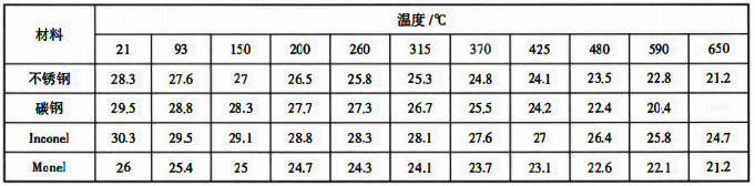 表1 溫度計套管材質(zhì)的彈性模量的取值(×6.9MPa)