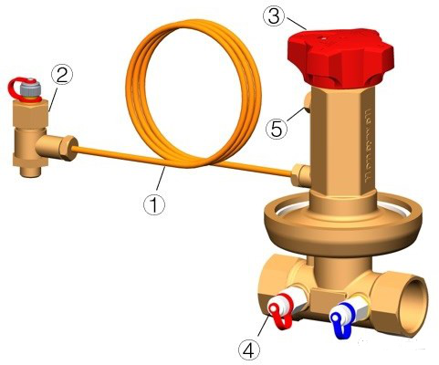 1、連接導(dǎo)壓管①,如安裝示意圖所示,一端接在VDPC動態(tài)壓差平衡閥上,另一端通過三通測量頭②接在靜態(tài)平衡閥上,此時系統(tǒng)應(yīng)處于低壓狀態(tài)。