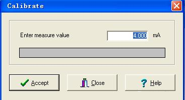 ②測量輸出的mA值,一般為4或者20mA,有偏差大的,填入測量的真實值,這樣就可以對安全柵的輸出進行修正。每次輸入后均需要點擊accept進行下裝。如果仍然有故障,則應更換安全柵并相應的做組態工作。