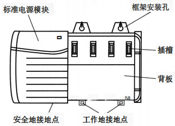 ControlLogix系統框架(也稱為底盤,指安裝模塊的物理支架,帶有插槽和背板,有些資料也稱為機架。)用來安裝除電源模塊之外的各種系統模塊,有4槽 、7槽、10槽、13槽和17槽等5種框架尺寸,目錄號分別為1756-A4、A7、A10、A13和A17,插槽編號都是從0號開始??蚣艿谋嘲逵懈咚倏偩€,各種模塊通過背板總線進行數據傳遞和交換。安裝了系統標準電源模塊的1756-A4框架如圖所示。