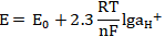 ,溶液的pH值是用來度量溶液酸堿度的,所以pH/OPR分析儀又被稱作酸度計。pH電極的電位對氫離子活度變化的響應(yīng)可用能斯特方程描述,如下列公式所示:
