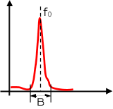 與寬帶信號相對應的是窄(頻)帶信號,假設信號的頻率寬度為B,中心頻率為f0,如圖9所示。通常認為窄帶信號滿足以下要求:信號的頻率寬度B遠小于中心頻率f0,通常要求B/f0<0.1。例如,單頻信號屬于窄帶信號,以及我們大多數情況下測量的信號只包含若干個單頻成分,那么這也是窄帶信號,對應的頻譜稱為窄帶譜(用若干譜線表示)。如使用步進正弦進行激勵時,則這種激勵技術是一種窄帶激勵技術,因為每一時刻,激勵信號只有一個單頻成分。