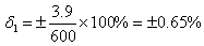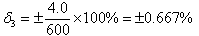 顯示儀表的允許誤差為:±[0.5%(量程)+1℃]=±4.0℃。其允許引用相對誤差δ3為
