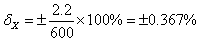 顯示儀表的精度選擇為0.2%級的,其允許誤差為:±[0.2%(量程)+1℃]=±2.2℃。其允許引用相對誤差δX為