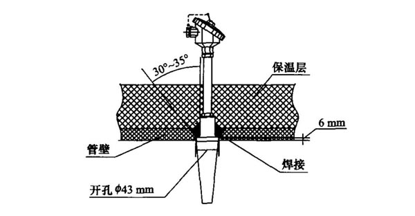 下圖為熱套式管座焊接方式,先在管道上開一個(gè)640mm的孔,然后在管道壁上焊一個(gè)8.9mm×23.5mm的管座,再將熱電偶插入管座內(nèi),將熱套式熱電偶套管與管座焊在一起。這種焊接方式適用于熱套式熱電偶,它對(duì)管座制作及熱電偶焊接過程要求非常嚴(yán)格,必須同時(shí)滿足下列條件: