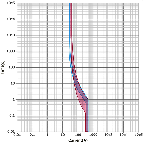 例如,當(dāng)過載電流為100A時,二者都會動作,雖然看起來D32的曲線(紅色)在LRD32曲線(藍色)下方,意味著前者有可能先動作,但是二者在該區(qū)域是重疊的,實際無法確定誰先誰后。