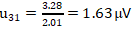 由20℃時校準得到的電壓修正值e,其擴展不確定度為U95=3.28μV,包含因子k=2.01,則