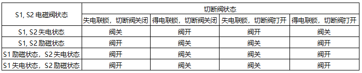 雙電磁閥狀態(tài)和切斷閥狀態(tài)對應(yīng)真值表見表1所列。