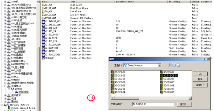 組態目標:在40_53-DCS-01控制器下新加AI點830LI001,描述為分離器液位,高高報警90,高報警80,低報警10,低低報警5。顯示在新建畫面上,畫面主題為“測試畫面”。組態完成后發布到相應操作站。