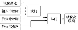 圖1中,液位高選表示現場液位計通過比較模塊后的輸出,輸入卡故障是SIS自診斷的通道或卡件故障標志,液位計故障是根據現場液位計故障電流系統做出的判斷,這三者任意一個都會觸發液位高聯鎖,這就是控制器的故障安全組態。邏輯描述都是正邏輯,所謂正邏輯就是變量字面描述的事件發生時,變量值為“真”(賦值1);按照GB/T 50770-2013中第11.1.1條要求,邏輯控制器的應用軟件采用正邏輯。需要說明的是:正邏輯和故障安全型沒有沖突,邏輯控制器的故障安全型是IO模件的輸入置位安全“0”,輸出模件斷開。正邏輯是為了方便邏輯的可讀性,避免歧義;邏輯組態的中間變量沒有故障安全的概念。