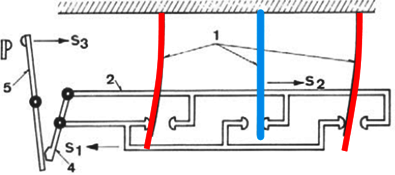 三相過載情況下雙金屬片同時彎曲推動脫扣板動作(圖7),如果是缺相情況下,非故障相雙金屬片彎曲推動脫扣板動作(圖8),過載和缺相保護動作時其NO觸點變為常閉,NC觸點變為常開,NC觸點斷開接觸器線圈供電,接觸器分斷過載電流。