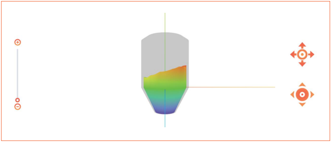 標(biāo)號(hào)②:用于切換顯示的三維形態(tài)為點(diǎn)云形式還是料面形式。切換好狀態(tài)下,可通過按住鼠標(biāo)左/右鍵進(jìn)行拖動(dòng)及旋轉(zhuǎn)操作,通過按住鼠標(biāo)中間的滾輪進(jìn)行放大縮小操作。