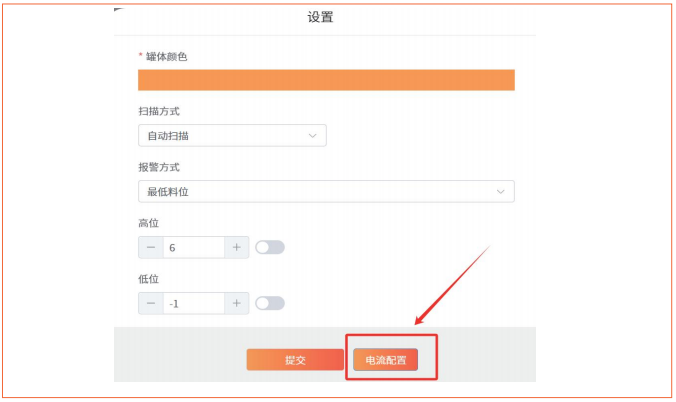 ◆罐體設(shè)置界面包含:物料名稱、物料密度、罐體顏色設(shè)置、掃描方式、報(bào)警方式等設(shè)置項(xiàng)。