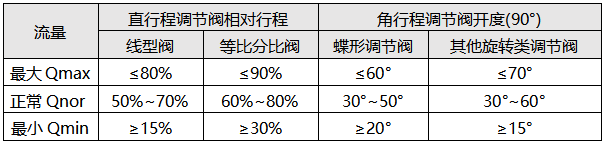在《自動化儀表選型設(shè)計規(guī)范》HG/T20507-2014中調(diào)節(jié)閥開度推薦如下范圍: