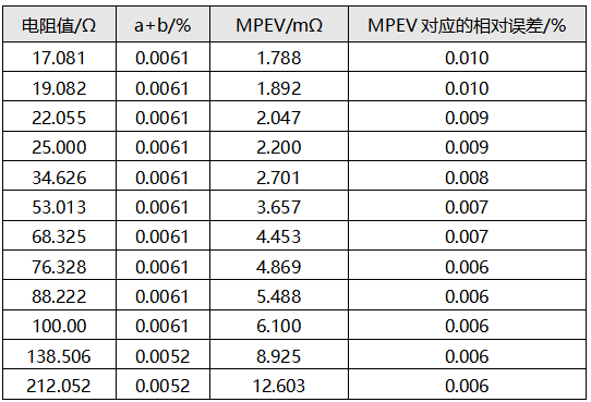 以上兩種判定方法,第1種可能會造成判定標準過于嚴格,尤其是電測儀表量程與所需的校準點不合理時。例如,吉時利2002型數字多用表校準25.0000Ω時,電測儀表量程為200Ω,計算其最大允許誤差為±1.225mΩ,相對誤差為0.005%,而其a+b值為0.0021%,究其原因是數表量程偏大,造成(b×量程)值偏大,最終可能造成誤判。第2種判定方法如果對電測設備指標概念把握不清(目前很多計量人員僅以a值作為等級指標),在電測儀表選型時就會出現錯誤,造成選配電測儀表不合理,數據超差。