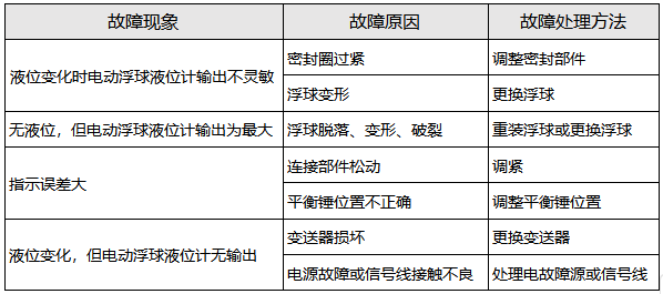 ②芳烴罐區浮球液位計,操作人員反映該表不隨容器內的液位變化,一直指示最大,不隨罐內液位變化