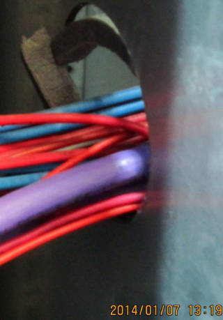 3、穿墻開(kāi)孔,未使用橡膠護(hù)圈保護(hù),致使線纜直接與鋒利的開(kāi)孔邊緣接觸