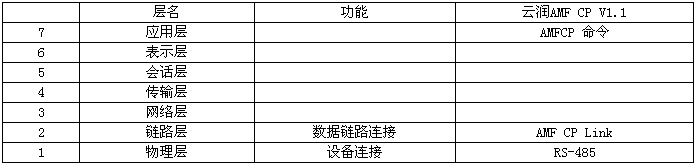 AMF CP V1.1協議遵從基本開放系統互連(OSI)參考模型,基本開放系統互連參照模型提供通訊系統基本結構和要素,但昌暉AMF CP V1.1協議使用簡化的OSI參照模型,僅采用1、2和7層?;鹃_放系統互連參考模型