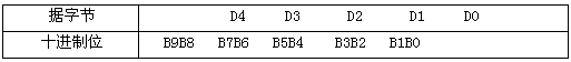 數據段的D4、D3、D2、D1、D0五個字節組成十位流量測量數據,每字節表示兩位十進制數,每字節表示的十進制數值范圍:0-99。