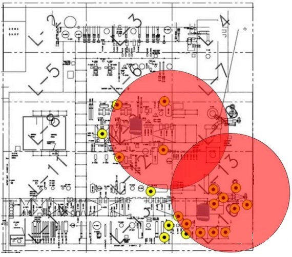 ? 嚴(yán)重障礙-30m,這是典型的高密度工廠環(huán)境,無(wú)法駕駛卡車(chē)或讓較大型設(shè)備通過(guò)。